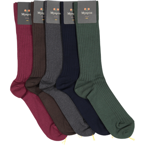 Bomullen gör att strumpan blir mer enhetlig, och således har vi valt lite starkare färger till detta material, för att sätta färg på en formell eller informell utstyrsel. Bomullsstrumpan är således ett lysande val till vardags då den är så pass universell i sina användningsområden samtidigt som den har samma snygga ribbade struktur som våra andra strumpor.